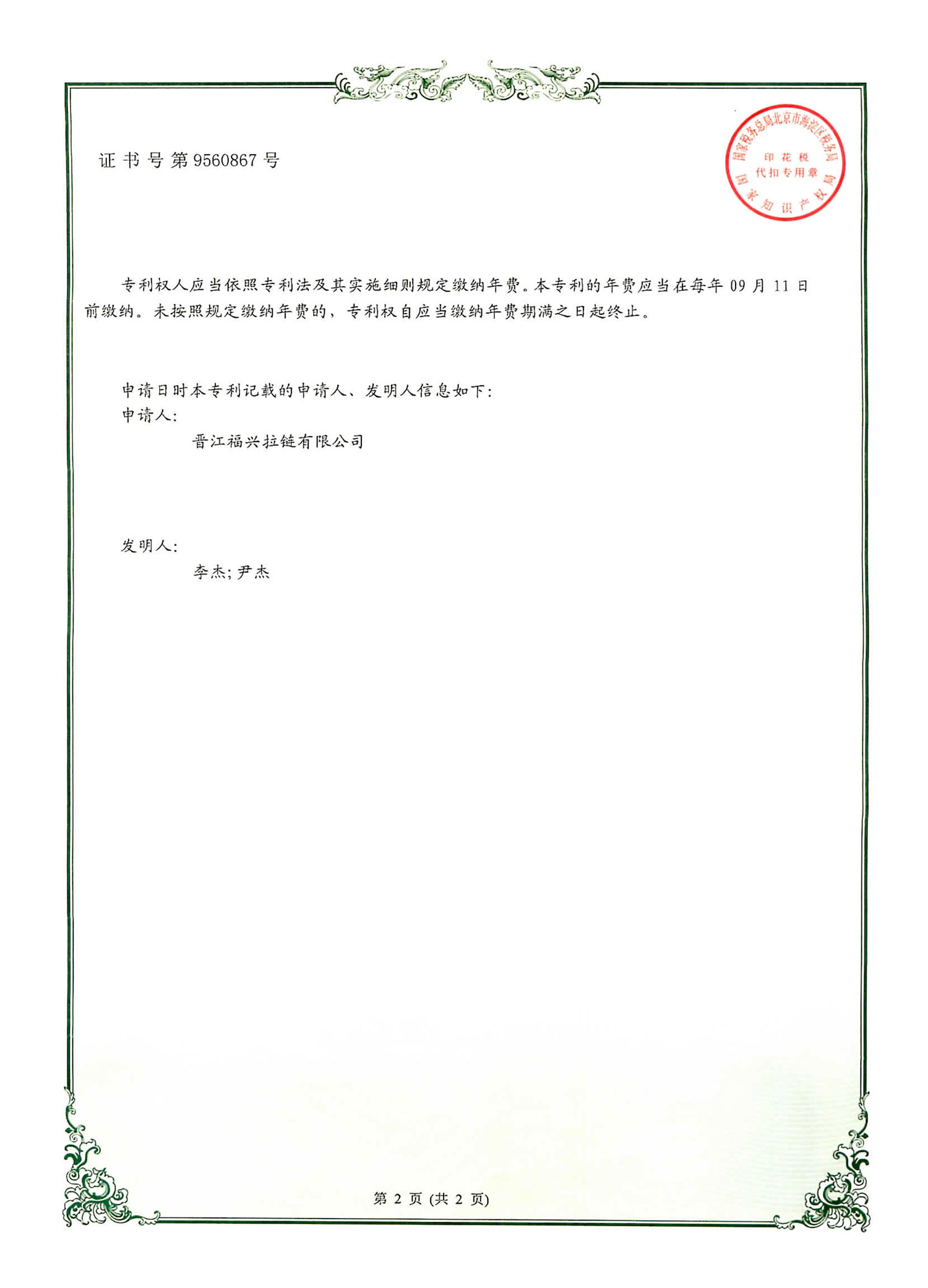 实用新型发明专利(第560867号)
