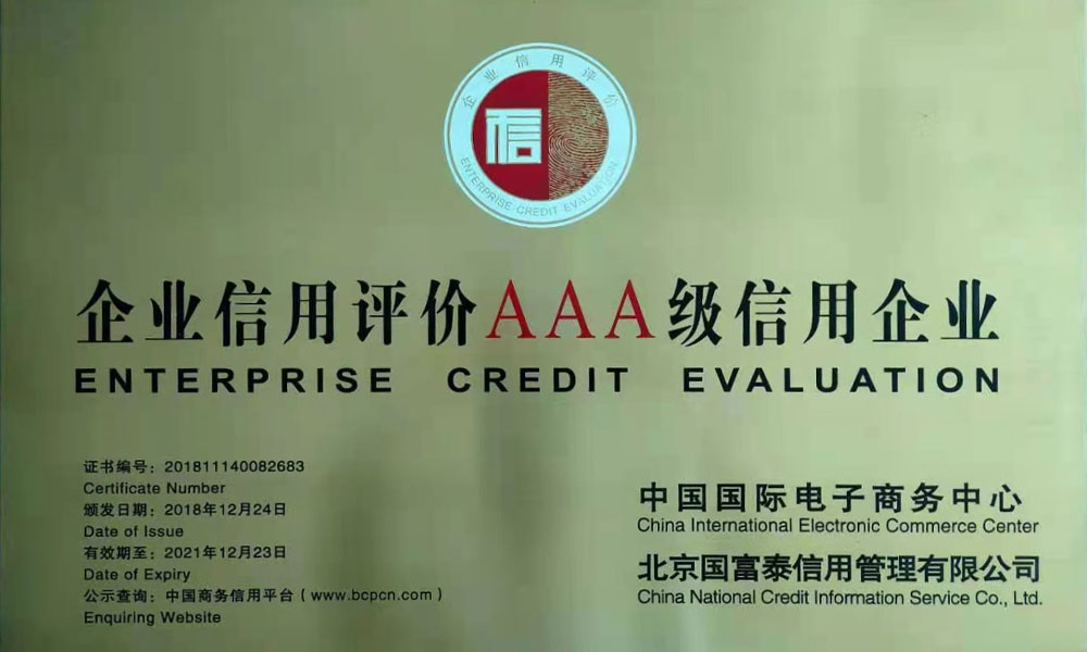 企业信用评价AAA级信用企业